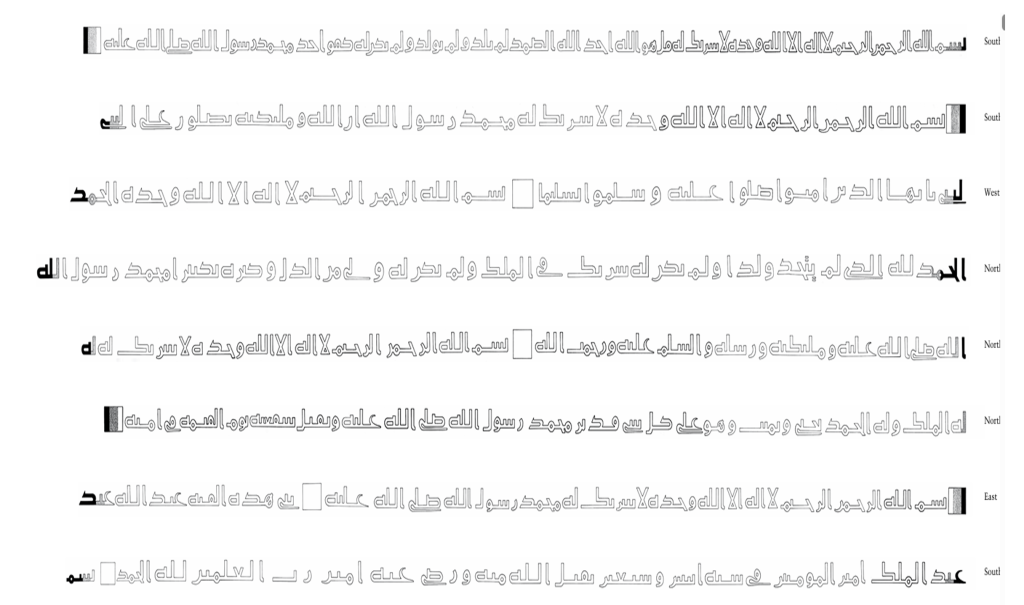 Kubbetü’s-Sahra yazıtlarında veya 72/692 tarihli sikkelerde görülenin aksine, bu versiyonun başında “ بِسْمِ اللّهِ ” ya da tam besmele yoktur. Halifenin, bu yeni sikkelerde vermek istediği mesajın Allah’ın birliği olduğu görülür.