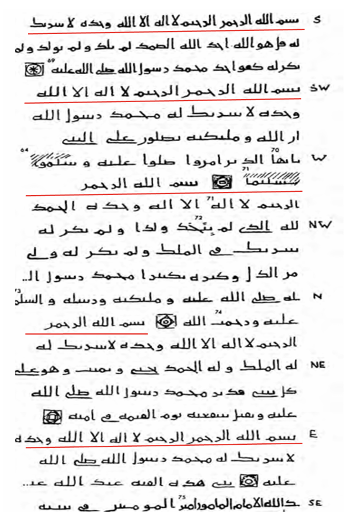 “ لا شريك له ” (la şeriyke lehu)  ifadesidir. 71 / 691 yılında Mısır da Müslümanların çok küçük bir azınlık olduğunu göz önüne aldığımızda bu ifade Müslümanlar ve Hristiyanlar arasında temel farkı, teslis inancı anlayışının reddedilmesi “ لا شريك له ” (la şeriyke lehu)  ifadesi ile özetlenmiştir.