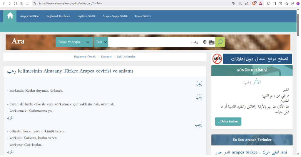https://www.almaany.com/tr/dict/ar-tr/%D8%B1%D9%87%D8%A8/?c=T%C3%BCm