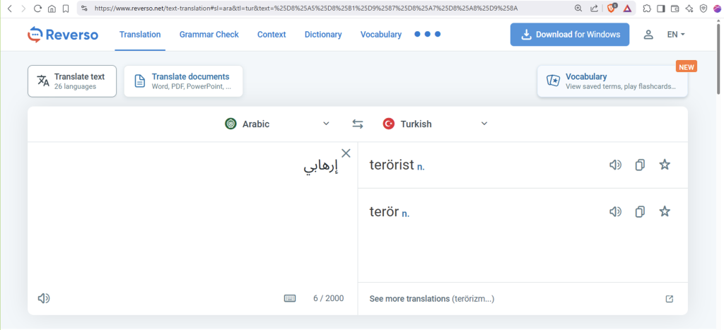 https://www.reverso.net/text-translation#sl=ara&tl=tur&text=%25D8%25A5%25D8%25B1%25D9%2587%25D8%25A7%25D8%25A8%25D9%258A